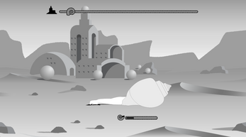 You find yourself lost and alone in a strange desert. A stone monolith is your only guidance. With patience, effort, and proper timing, you might stand a chance of reaching town before you run out of stamina.